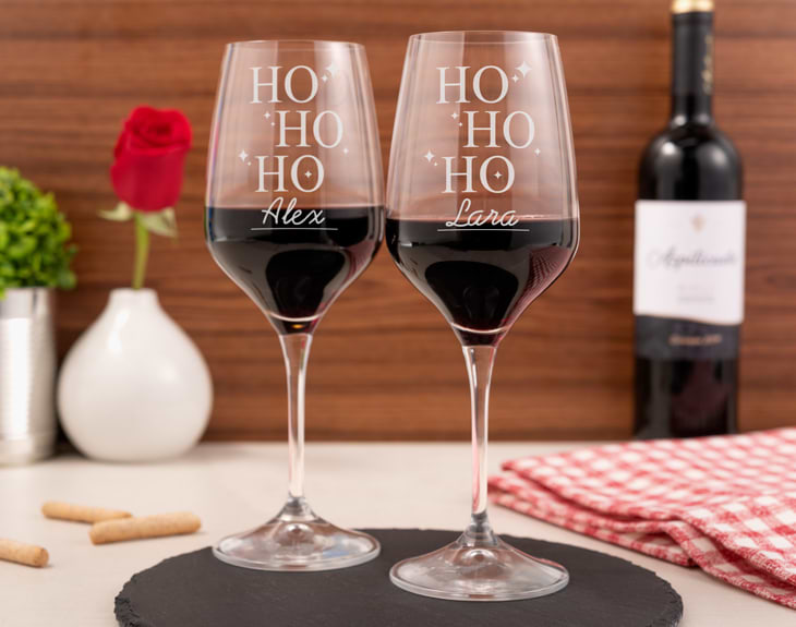 Si lo que más te gusta de la Nochebuena es comer y beber rodeado de todos tus familiares y seres queridos, tenemos algo que no te puede faltar. Nuestra copa de vino personalizada con diseño "Ho ho ho" es ideal para que podáis brindar por por la familia y la salud. Por otro lado, si quieres sorprender a esa persona que nunca se separa de su copita de vino en la celebraciones, sorpréndele con nuestra copa de vino navideña, ¡le encantará! Además, lo más especial es que es personalizable, podrás escribir el nombre de ese amante del vino. ¡Quedará genial! Personalizar esta copa de vino es muy sencillo. El primer paso a seguir consiste en añadir el producto al carrito y entrar al área de personalización. Una vez ahí, ya puedes escribir el nombre que tú quieras y nosotros nos encargamos de grabarlo en la copa. Pronto estará perfecta y lista para regalar. ¡Será un original regalo para Navidad! Cada copa tiene una capacidad de 240 ml y un diámetro de 7.2 cm, el tamaño ideal para que resulte cómodo y funcional beber de ellas. Cómo cuidar tus copas: para mantener la belleza de tus copas por favor sigue las instrucciones con cuidado. Es importante evitar que sean expuestas a altas temperaturas. Lávalas siempre a mano, con mucho cuidado de no dañar los cristales. Seca con un trapo suave, sujetando la pieza por la parte superior. No aptas para lavavajillas. Capacidad de las copas: 240 ml