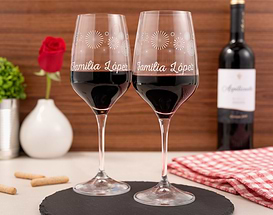 • Copa de vino de bohemia personalizada (240 ml). • Tarjeta Recordatoria.