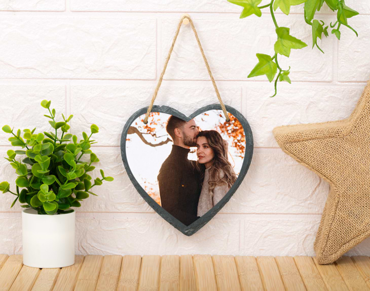 ¿Puede haber algo más bonito que el amor que sientes por una persona? El cariño que nace cuando conocemos a la persona con la que vamos a compartir el resto de nuestra vida es único, no se puede comparar con el amor que sentimos por otras personas. Es algo puro, que nos emociona y nos hace querer estar con esa persona hasta hacernos mayores. ¡No hay un sentimiento más bonito que eso! Si estáis empezando una nueva vida juntos, puede ser que estéis buscando la forma en la que vuestro amor quede latente en la decoración. ¿Quieres hacerle un regalo a tu pareja con el que todas las visitas puedan comprobar el amor que sentís el uno por le otro? ¡Este tablero de pizarra en forma de corazón será el mejor recordatorio de que lo vuestro es para siempre! Este corazón de pizarra con cuerda de yute y tiza incluidas cuenta con una medida de 15,5 centímetros de alto por 14 de ancho. ¿Cómo puedes personalizar este regalo original para parejas? Una vez añadas el producto al carrito, podrás acceder al área de personalización, donde encontrarás la plantilla del producto. ¡Solo tendrás que subir vuestra mejor foto al sistema! Crea un detalle de lo más romántico para él o ella. Dimensiones del tablero: 15,5x14