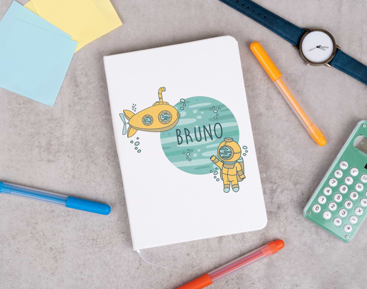 Un cuaderno personalizado perfecto para que tu peque empiece el cole con fuerzas. Así podrá escribir todas las aventuras que vaya viviendo durante este año. Todas sus ideas, descubrimientos y sentimientos quedarán en este cuaderno. ¿No te parece precioso? Un regalo original y muy especial que le gustará muchísimo. Disponible en cuatro modelos: