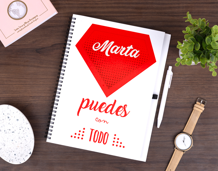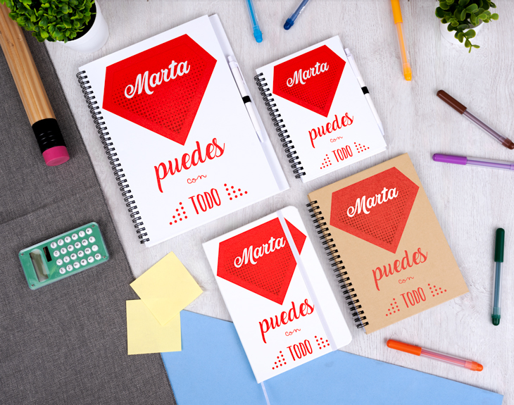 • Cuaderno personalizado. • Tarjeta recordatoria.