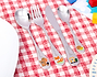 • Juego de 4 cubiertos grabados con nombre. (Incluye un cuchillo, un tenedor, una cuchara y una cucharilla.) • Tarjeta Recordatoria.