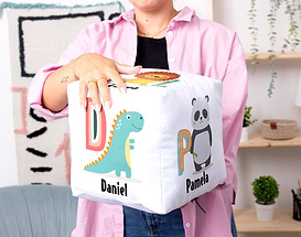 ¿Estáis buscando un regalo realmente original? ¡Tenemos la opción perfecta! Se trata de un divertidísimo cojín con forma de cubo personalizado, perfecto para decorar cualquier estancia de la casa. Y es que, imagínate lo guay que sería tener un dado gigante decorando tu habitación. Lo mejor, es que podréis personalizarlo totalmente a medida con nuestra fantástica familia Tinok, ¡os contamos cómo! Simplemente tenéis que entrar en nuestro diseñador y seleccionar los seis personajes que queráis que añadir, cada uno aparecerá en una cara del cubo. Para personalizarlo hay dos opciones, escoger entre nuestros Tinoks predeterminados e incluir el nombre de cada uno de vosotros, o mejor aún, ¡crear vuestros propios personajes desde cero! Pelo, ropa, accesorios...¡podéis seleccionar todo lo que se os ocurra para que os sintáis totalmente representados! ¿No os parece una idea increíble? Ya sea como regalo de cumpleaños, de amigo invisible o de Navidad...¡este detalle marcará la diferencia! Especificaciones: - El cubo cuenta con 6 caras. - Cada cara incluirá un personaje - Medidas: 25 x 25cm.