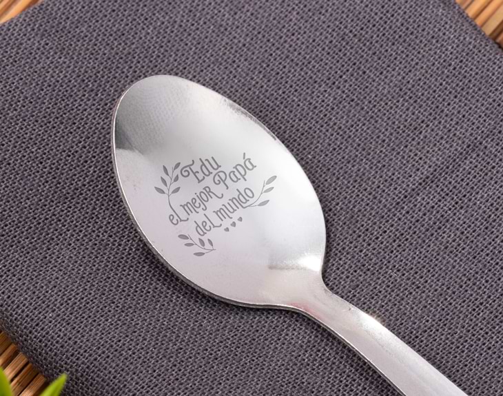 ¿Quieres soprender a papá con un detalle único y diferente en esa fecha tan especial? No te preocupes porque tenemos la idea definitiva con la que vas a triunfar seguro: ¡esta adorable cucharilla de acero inoxidable personalizada! Es perfecta para que papá pueda mover su café con ella o disfrutar de su postre favorito. ¡Nadie tendrá una igual! Olvídate de los típicos regalos que siempre le haces papá y déjale si palabras con algo que seguro que no se espera. Porque esta original cucharilla además de ser práctica y muy útil, contiene un mensaje que no dejará indiferente a ningún padre. Tú solo tienes que decirnos qué nombre quieres poner en el diseño y nosotros nos encargamos de grabarlo en la cucharilla para que quede perfecto. Por eso, antes de poder hacer este regalo, tienes que personalizar esta cucharilla para darle ese toque único y especial. Entra en el área de personalización y completa el diseño con el nombre de papá. Podrás ajustarlo como tú quieras y ya estará listo. ¡Será la cucharilla perfecta para el Día del Padre! Material: acero inoxidable. Medidas: 11 x 3 cm.