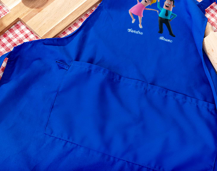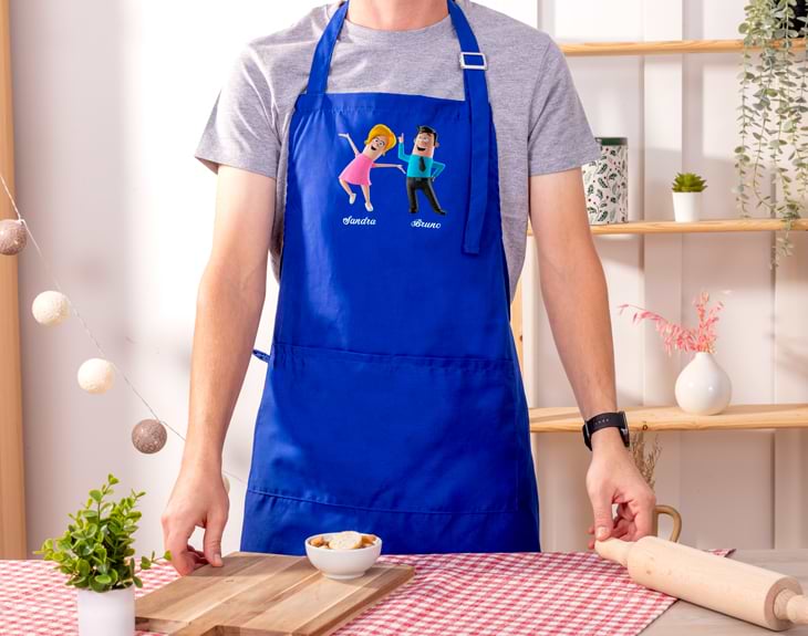 Todo cocinero/a merece tener algo que le represente mientras hace las mejores recetas del mundo. Por eso, si quieres tener un detalle con tu chef favorito, sin duda este delantal personalizado es el mejor regalo que puedes hacerle. Seguro que no tendrá uno igual y podrá utilizarlo siempre que quiera. Este original delantal se convertirá en el accesorio perfecto para los más cocinitas. Su color azul oscuro hace que sea único y lo mejor es que podrás ajustarlo gracias a la hebilla que se encuentra en la parte del cuello. Y por supuesto, cuenta con un bolsillo para que puedas guardar los utensilios que quieras. ¡Vamos, que lo tiene todo! Y llega el momento de personalizar el delantal para convertirlo en una prenda única. Entra en nuestro diseñador y podrás elegir los personajes de nuestra 'Familia 3D' que más se parezcan a ti y a quien tú quieras. ¡Quedará genial! Medidas del delantal: 94 x 70 cm. Medidas de cada tira: 97,5 cm.