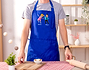 • Delantal de cocina azul oscuro personalizado. • Tarjeta recordatoria.