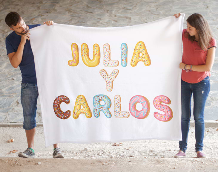 • Delantal personalizado. • Tarjeta recordatoria. Cocinar postres es toda una especialidad. Puede que no te guste cocinar comidas principales pero ¡ay! Cuando hablamos de postres y dulces, ¡no hay quien se resista! Desde las recetas más sencillas que cualquiera podría hacer, como las tortitas o los bizcochos, hasta los postres más elaborados como la mousse o los macarons, todas son elaboraciones que tienen algo en común: un resultado de lo más dulce que a todos nos encanta probar. Por ese motivo, si tienes un amigo que se inicia en la cocina con su primer bizcocho de yogurt, o un familiar que os sorprende en cada comida con un postre cada vez más elaborado, es hora de que les devuelvas su cariño con un regalo de lo más especial y pensado solo para los más cocinillas: nuestro delantal personalizado Letras Donuts. Este delantal está fabricado en una suave tela blanca y cuenta con cinta para colgarlo al cuello y con dos cintas adicionales para atarlo a la cintura. Aunque el diseño podría realizarse en otros colores de delantal, recomendamos hacerlo siempre en color blanco, ya que es el que mejor refleja la impresión y los diferentes colores, ¡algo muy importante en este diseño! Además, el delantal es perfecto para cubrir a una persona adulta y protegerla de las manchas ya que, por supuesto, el delantal puede lavarse sin problemas en la lavadora, sin perder su diseño ni su precioso estilo. La personalización consiste, como ya hemos comentado, en escoger un texto o palabra/nombre que nos guste. Para poder escribirlo en el delantal, solo tienes que escoger una a una cada letra del texto y nosotros nos encargamos de imprimirla en el delantal y enviarla allá dónde nos indiques. Si buscas un regalo práctico y pensado para esa persona a la que tanto quieres y a la que le encanta cocinar, este precioso delantal personalizado es ideal para sorprender a una persona tan dulce como él/ella. Es un regalo tan precioso que seguro que te llenará de besos cuando se lo regales y estará deseando ponerse manos a la obra para usarlo.