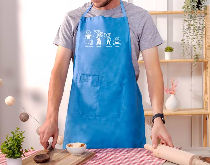 Para muchos, cocinar para la familia es lo más bonito del mundo. Para nosotros también, y por eso queremos que diseñes estos espectaculares delantales (3 colores disponibles) con nuestra familia más popular. Tienes hasta 150 personajes. -Medidas aproximadas Delantal de colores: 89x65cm. Delantal blanco: 84x57cm. Importante: La disposición de los personajes será realizada por nuestros diseñadores gráficos, adaptando el número de personajes lo mejor posible para conseguir un resultado óptimo. Material del delantal blanco: 100% poliéster. Material del delantal de color: 65% poliéster, 35% algodón.