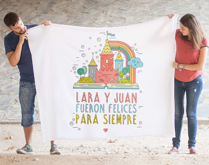 Cuando la relación con tu pareja pensabas que no podía ir a mejor, llega un regalo original y te descuadra el esquema. ¿Vives un amor de cuento? Sales a pasear con tu pareja y te parece el mejor plan del mundo, te hace la cena y siempre es muy romántica o está pendiente de ti a todas horas. Está claro que vives un amor de cuento. Por eso, este delantal personalizado está diseñado para ti, para que puedas seguir haciendo grande ese amor que tanto os une. Cocinar juntos es lo que os falta, y este delantal os dará la oportunidad de oro para aprovechar el tiempo juntos. Solo necesitamos vuestros nombres para personalizar el regalo. A partir de ahí, esta dulce y feliz pareja serán felices para siempre, al igual que los amores de cuento. ¿Os animáis a vivir una de las mejores relaciones de amor de vuestra vida? -Medidas aproximadas Delantal de colores: 89x65cm. Delantal blanco: 84x57cm. Material del delantal blanco: 100% poliéster.