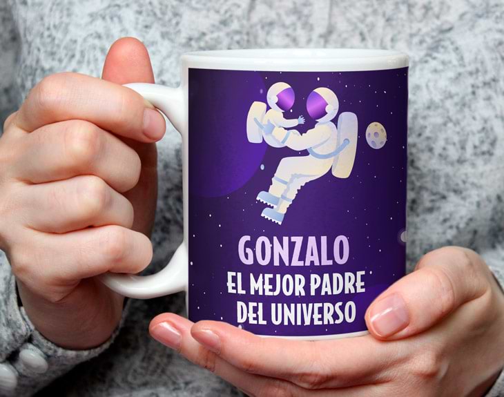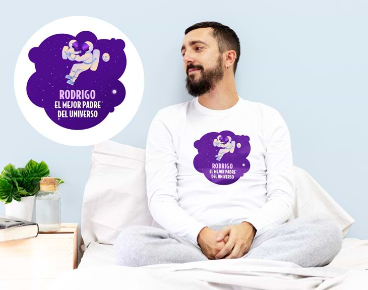 ¿Quién cocina en casa? Es una lata pensar qué cocinar para toda la familia cada día. Puede que tu padre sea el encargado de organizar todas las comidas y preparar una deliciosa cena para toda la casa. Eso le convierte en una persona especial, ¿y por qué no decírselo de una manera singular? Por eso, tenemos este delantal personalizado. ¡Seguro que le dejará claro lo importante que es para ti! Y es que todos pensamos que nuestro padre es el mejor del universo. Lo ha demostrado con el paso de los años, ayudándonos y dándonos su apoyo en todo momento, incluso en los más complicados. Agradécele todas las comidas que ha cocinado para ti con este regalo original... ¡y déjale claro cuanto le quieres! Este diseño es precioso y muy especial. Con un color morado que encantaría a cualquiera, se puede ver a un astronauta, agarrando a su hijo en mitad del universo. Para que este regalo sea aún más único, podrás personalizarlo añadiendo el nombre de tu padre. ¡Así sabrá que le quieres hasta el infinito y más allá! -Medidas aproximadas Delantal de colores: 89x65 cm Delantal blanco: 84x57 cm -Medidas aproximadas de la cinta del delantal con foto blanco: 60 cm cada tira. Material: 100% poliéster.