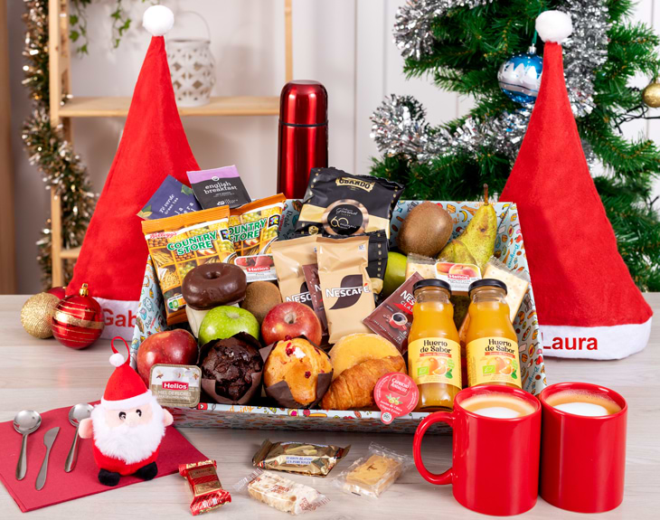 Si es para 2 personas se duplica todo el contenido menos el termo y el muñequito de Papá Noel.