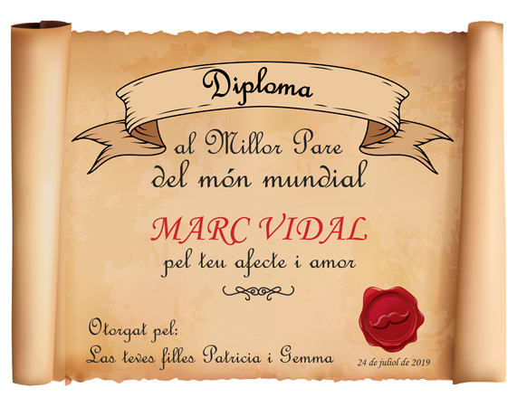 Pocas cosas hay más entrañables que regalar un diploma personalizado. Y si se trata de un diploma honorífico en catalá, seguro que llegas al corazón de quien se lo merezca. Lo fabricamos en un papel que simula el pergamino, de gran calidad y gramaje. Por supuesto, ponemos todo lo que tú nos digas: nombre de la persona, una frase especial, nombre de quien hace el regalo y la fecha del mismo. ¡Un recuerdo para toda la vida! Además, tienes la opción de adquirir el diploma enmarcado. Importante: El color del marco puede variar según stock.