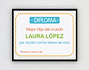 • Diploma Polka Dots personalizado. • Tarjeta recordatoria.