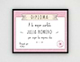 • Diploma rosa personalizado. • Tarjeta recordatoria.