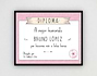 • Diploma rosa personalizado. • Tarjeta recordatoria.