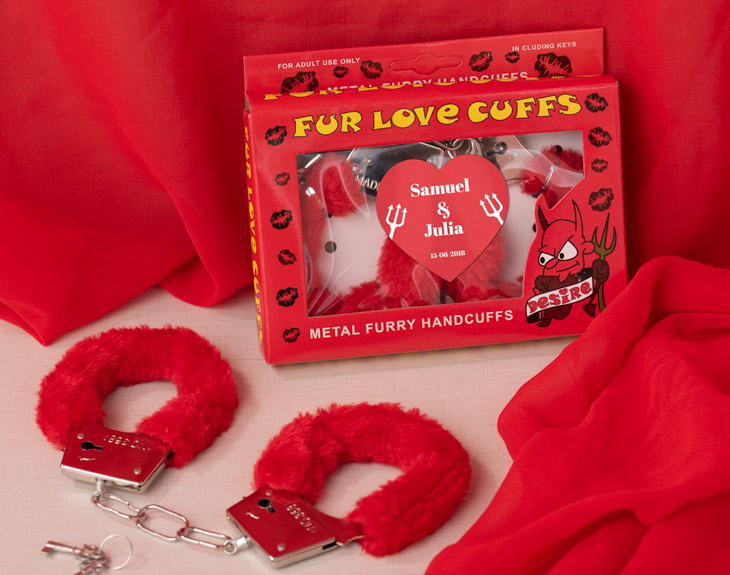 El amor está para vivirlo en todas sus formas, con intensidad, cariño, y sobre todo, mucha pasión. Y es que una pareja que no tiene pasión en su vida es muy complicado de mantener. El amor se puede expresar de muchas maneras distintas... ¡Y algunas son de lo más particulares! Por eso, queremos que el amor de tu vida y tú mantengáis esa llama que os ha llevado a lo largo de todos estos años, que os ha convertido en las personas que sois hoy en día. ¿Queréis revivir la llama de la pasión de una manera única? Este San Valentín os lo pasaréis de miedo con estas esposas del amor personalizadas. Estas esposas del amor con nombre están hechas para todas aquellas personas a las que les encanta vivir los momentos al máximo con su pareja. Esta regalo original irá personalizado con vuestros nombres, encima de la caja con una pegatina de lo más picante. ¡Este 14 de febrero es perfecto para probar cosas nuevas! Medidas de la caja: 15x12 cm.