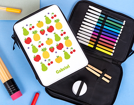 ¿Cuál es la mejor merienda para el recreo? ¡Una deliciosa pieza de fruta! Si habitúas a tus hijos desde bien pequeñitos a comerla diariamente, ya no podrán vivir sin su delicioso jugo y sus nutrientes. Les gustarán tanto que querrán tenerlas todas sobre su propio estuche de algodón reciclado personalizado. Las peras, las manzanas, las piñas, las uvas... ¡Una selección de los mejores sabores y nutrientes que le recordarán a diario la importancia de cuidar su cuerpo! Otra cualidad importante que le enseñará este estuche infantil de colores con nombre y diseño es a cuidar sus pertenencias. ¡Se acabó perder el material escolar o confundirlo con el de los compañeros! Escribe su nombre, su clase o cualquier breve texto que quieras junto a todas estas frutas. Este diseño infantil tan colorido le alegrará cada mañana cuando tenga que abrirlo para empezar a escribir los apuntes. El mejor momento de Septiembre es la compra de del material escolar. ¡Déjale que escoja completamente el suyo con este regalo original para la vuelta al cole! Tan bonito como sostenible y respetuoso con el medio ambiente. Material: algodón reciclado. Medidas: 21x12,5 cm.