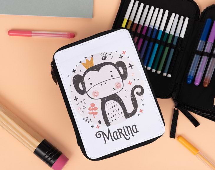 ¿Tu hija está de los nervios por el comienzo de las clases? Si tiene una mezcla entre ilusión por ver a sus amigos y un poco miedo por saber cómo va a ser el nuevo curso, es el momento de darle una sorpesa con un regalo original como este. Y es que, seguro que al estrenar material escolar le dan muchas más ganas de ir al cole. ¡Y ya ni hablamos si es un estuche personalizado tan guay como este! Y es que, si es la reina de la casa, este diseño está hecho para ella. ¡Seguro que le encanta! Solo necesitamos que nos digáis el nombre o el texto con el que queréis personalizarlo y no parará de presumir de estuche. ¡Todas sus amigas querrán uno así de guay! Además, es una manera fantástica de asegurarte que tiene siempre sus pinturas, lapiceros y bolígrafos bien ordenados. Cuenta con dos compartimentos separados por cremalleras para que pueda organizar perfectamente su material. Capacidad: - 24 ranuras elásticas de 1 cm - 3 ranuras elásticas de 1 cm - 1 ranuras elásticas de 4 cm - 2 ranuras elásticas de 1, 5 cm - 3 ranuras elásticas de 4, 5 cm Medidas del estuche: 21cm x 15cm. Importante: no se incluye el contenido del estuche.