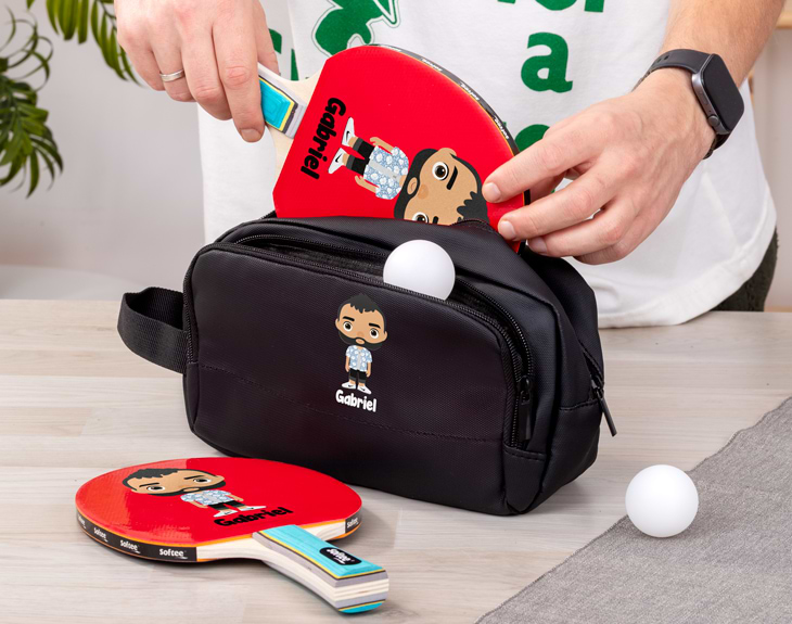 ¿Eres de los que convierte cualquier mesa en una pista de tenis de mesa? ¿Y te pasas el día pensando en tu próxima partida? Entonces este estuche para pala de ping pong personalizado es para ti. Porque ser fan de este deporte se nota… hasta en los pequeños detalles. Fabricado con material impermeable y resistente, este estuche es ideal para proteger y guardar tus palas de ping pong, que también puedes personalizar a tu gusto. Cuenta con dos compartimentos perfectos para llevar no solo las palas, sino también pelotas u otros accesorios. Y lo mejor: puedes elegir la opción que más se adapte a ti, solo el estuche, con una pala, con dos palas, cualquiera que elijas viene con las pelotas y así crear tu propio set de ping pong personalizado. ¿Y lo más divertido? ¡La personalización! Cada accesorio puede llevar su propio personaje, gracias al diseño exclusivo de Tinok. Crea el personaje que más te represente, añádele tu toque personal y haz que todo el conjunto sea tan único como tú. Además, puedes incluir tu nombre justo debajo del personaje. Un regalo original, pensado para auténticos fanáticos del ping pong: esos que ven en cualquier superficie plana una oportunidad para jugar. ¿Listo para personalizar? Es muy fácil: elige la opción que prefieras, añádela al carrito, diseña tu personaje en cada producto y escribe el nombre que quieras. En solo unos pasos, tendrás un estuche único que no solo guarda palas y pelotas… también guarda reflejos, emoción y mucho estilo. Importante: si eliges la opción con pelotas, el pack incluye tres unidades. Medidas del estuche: 24 x 15 x 8 cm Medida de la pala: 25 cm Color de las pelotas: surtido