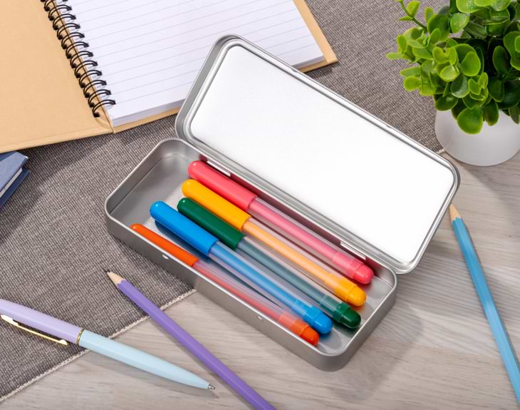 Este estuche metálico personalizado es una original y divertida forma de decirle a vuestro o vuestra profe que es la mejor del mundo y que la queréis mucho. Aprovechad el final del curso para darle las gracias por todo lo que habéis aprendido en sus clases y por lo mucho que os ha ayudado. Seguro que a vuestra profe le hace mucha ilusión que sus alumnos le hagan un regalo tan especial como este. Estamos convencidos de que a partir de ahora este estuche irá con ella a todas partes. Personalizar este estuche es muy sencillo, solo nos tenéis que decir el nombre de vuestro o vuestra profe y nosotros nos encargaremos de que el diseño quede perfecto. ¡Le encantará! Material: aluminio. Medidas: 2,5 cm x 7,5 cm x 18,5 cm.