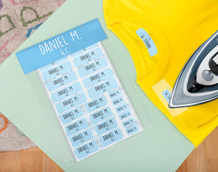 Cada pack incluye etiquetas de 4 tamaños y formas distintas (circulares y rectangulares), perfectas para adaptarse a cualquier prenda: camisetas, sudaderas, batas, mochilas o incluso ropa interior. Solo necesitas una plancha y en unos segundos quedarán adheridas para aguantar lavados, juegos y aventuras.