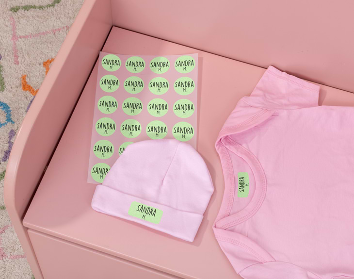 • Pack en sobre con 96 etiquetas para ropa personalizadas.