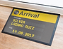 Felpudo personalizado perfecto para decorar la entrada a un hogar que esté esperando a un nuevo miembro. Dinos un nombre y una fecha, y lo convertiremos en el típico panel de llegadas de un aeropuerto. -Durabilidad: 1 año. Material: goma y microfibra.