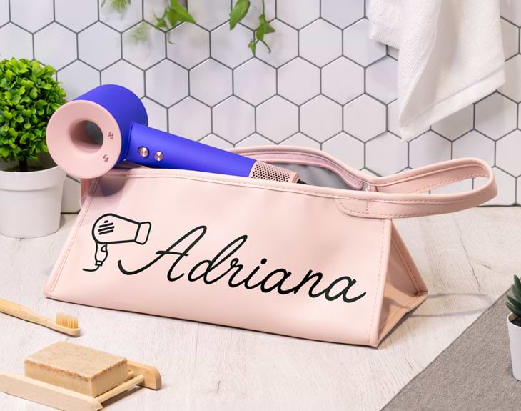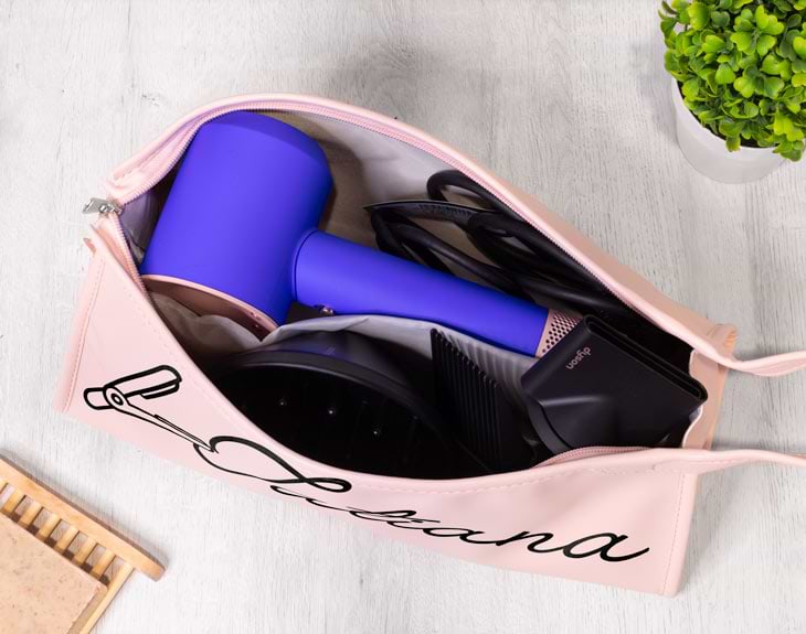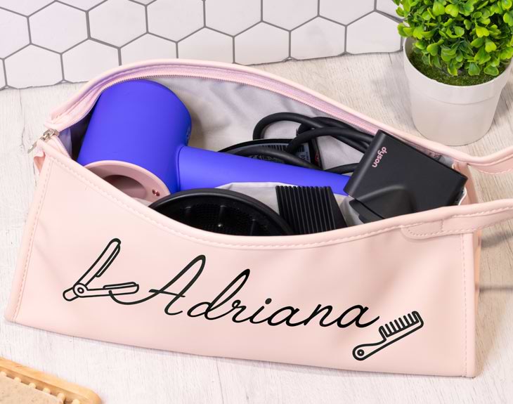 ¿Buscas una funda para guardar el secador cuando te vas de viaje? Está claro que nuestra funda para accesorios de pelo es algo que no te puede faltar. Es ideal para que puedas guardar todo lo que utilices a la hora de cuidar tu cabello, como el secador, las planchas, rizador, difusor... ¡Estará todo bien protegido y guardado! Lo más guay de esta funda para accesorios de pelo es que es personalizable. Podrás escribir el nombre que tú quieras. Además, esta funda se puede convertir en un original regalo para esa persona que utiliza siempre estos productos para el pelo. ¡Gracias a esta funda estará ordenados y bien guardados! Personalizar esta funda para accesorios de pelo es súper sencillo. El primer paso a seguir consiste en añadir el producto al carrito y entrar al área de personalización. Una vez ahí, ya puedes escribir lo que quieras en esta funda tan chula. Pronto estará perfecta y lista para regalar. ¡Será un original regalo! Material: cuero sintético. Medidas: 33 x 15 centímetros.