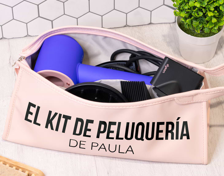 Si lo que buscas es una una bolsita para guardar tu secador de pelo, está claro que nuestra funda para accesorios de pelo personalizada ten vendrá genial. Es ideal para que puedas guardar todos tus productos para el cuidado de tu cabello, como las planchas, un rizador, el secador... Lo más guay de esta funda para accesorios de pelo es que es personalizable. Podrás escribir el nombre que tú quieras, es genial. Además, esta funda se puede convertir en un original regalo para esa persona que utiliza siempre estos productos para el pelo. ¡Gracias a esta funda estarán guardados y bien protegidos! Personalizar esta funda para accesorios de pelo es súper sencillo. El primer paso a seguir consiste en añadir el producto al carrito y entrar al área de personalización. Una vez ahí, ya puedes escribir lo que quieras en esta funda tan chula. Pronto estará perfecta y lista para regalar. ¡Será un original regalo! Material: cuero sintético. Medidas: 33 x 15 centímetros.