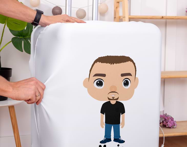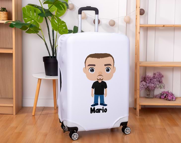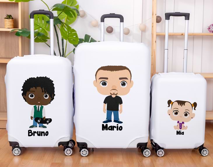 ¿Te imaginas llegar al aeropuerto y reconocer tu maleta al instante porque… lleva tu personaje estilo Funko? Con nuestra funda personalizada para maleta Familia Tinok, no solo proteges tu equipaje con estilo, ¡sino que también lo transformarás en una maleta original y única! Cada funda incluye tu personaje creado desde cero, con rasgos, peinado, ropa y accesorios totalmente personalizados. ¡Vos, en versión mini Funko, viajando por el mundo! Nuestras fundas están confeccionadas con un material elástico que se adapta perfectamente a tu maleta. Son resistentes y muy fáciles de colocar y quitar. Además, cuentan con aberturas para las asas y las ruedas, y se cierran con velcro para una sujeción segura durante todo el viaje. Disponibles en tres tamaños: pequeña (ideal para cabina), mediana y grande. No importa si viajas por trabajo, escapadas de fin de semana o aventuras en familia, hay una funda perfecta para tu tipo de maleta. Crear tu funda es muy fácil y divertido. Solo tenés que diseñar tu propio personaje Tinok: elige el peinado, la ropa, los rasgos físicos, los accesorios… ¡y listo! El resultado es una funda de maleta tan original que será imposible no sonreír cada vez que la veas rodar por la cinta del aeropuerto. Importante: nuestro equipo de personalización se encargará de ajustar la distribución de los personajes en el producto según su tamaño, para que se vean lo mejor posible. Medidas: • Maleta de cabina: 47 x 50 cm • Maleta mediana: 54 x 60 cm • Maleta grande: 64 x 70 cm