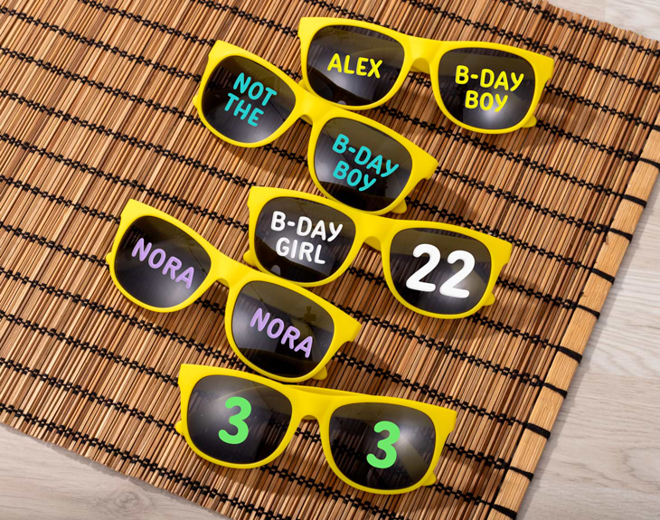• Gafas de sol personalizadas. • Tarjeta recordatoria.