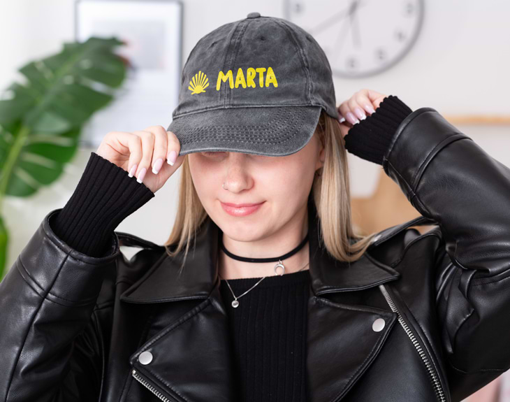 El Camino de Santiago es algo que por lo menos, hay que hacer un avez en la vida. Dicen que es una experiencia que te cambia la vida y reúne a ciudadanos de todo el mundo. Si te has animado a hacerlo durante el verano, te recomendamos que te hagas con esta gorra retro personalizada tan guay. ¡Es el accesorio que necesitas! Estamos seguros de que esta original gorra se convertirá en tu mejor aliado para completar el Camino sano y salvo, sin sufrir ningún golpe de calor. Pero es que además de poder elegir el color que más te guste, el diseño de esta gorra te hará sentirte como un auténtico peregrino. ¡Es lo más! Pero antes de poder disfrutar de esta prenda en tu nueva aventura, tienes que personalizarla. Entra en el área de personalización y completa este diseño tan característico con el nombre que tú quieras, nosotros nos encargamos del resto. ¡El Camino te espera! Diámetro: 59 cm. Material: Algodón.