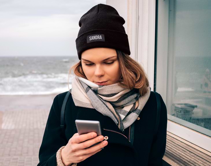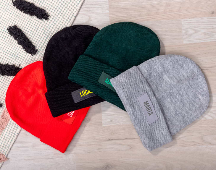 • Gorro de punto con etiqueta personalizado. • Tarjeta recordatoria.