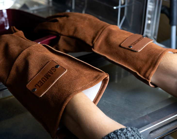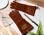 • Guantes de cuero personalizados. • Tarjeta recordatoria.