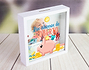 Piensa en todas las cosas que quieres hacer, que parecen tan lejanas pero que están en realidad a un solo paso: ¡ahorrar! Sabemos que esto a veces es difícil, y por eso queremos animarte a que cumplas todos tus sueños que tienes en la cabeza. Y esta vez, podrás hacerlo de una manera divertida y totalmente creativa con nuestra hucha de madera personalizada y con foto. Porque es tan importante lo que ahorras como dónde lo haces. Cada vez que la veas, ¡te darán ganas de echar otra moneda o billete más! Para que disfrutes hasta eligiendo el tipo de hucha que quieres, la hemos preparado para que la diseñes completamente a tu gusto. ¿De quién son estos ahorros? Escribe sobre el cristal frontal de la hucha el nombre de ese amigo/a que gasta demasiado y sorpréndele con el mejor y más útil regalo original para él. Y en el fondo, podrás insertar esa foto tan chula que tenéis juntos, la de ese lugar al que quiere ir con estos ahorros... ¡Crea tu propia hucha personalizada! Aparte de este precioso y adaptable diseño con un monísimo cerdito, la cubierta de la hucha blanca cuadrada está fabricada para ser también un genial complemento de hogar. Será como un chulísimo marco de fotos donde además puedes guardar tu dinero para tener imágenes aún más chulas en sitios donde nunca has estado. Para abrir la hucha de madera podrás hacerlo en la parte trasera, donde encontrarás el cartón que cierra la hucha. Ahí tendrás que abrir las cuatro pestañas negras que encontrarás a cada uno de los lados de la hucha. Ahora podrás retirar el cartón y obtener todos tus ahorros. ¡Será el momento de hacer ese viaje que tanto has soñado!