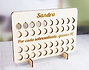 • Hucha de madera. • Soporte de madera. • Tarjeta Recordatoria.