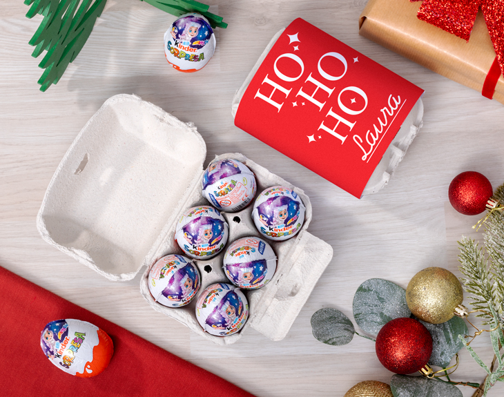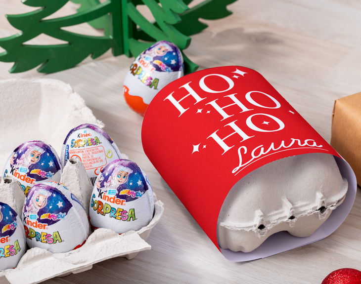 ¿Qué es lo que más te gusta de la Navidad? ¿Ver las luces de los adornos navideños, decorar la casa, recibir o hacer regalos, reunirte con tus seres queridos, disfrutar de las comidas familiares… o tal vez los deliciosos dulces navideños? Si eres de los que no pueden resistirse al dulce, tenemos algo que no te puede faltar. Nuestra huevera personalizada con diseño "Ho ho ho", una idea divertida para sorprender a quien más quieres. Una caja con 6 huevos Kinder, y no solo es un regalo delicioso, ¡también es completamente personalizable! Puedes añadir el nombre que desees o un mensaje especial para hacerlo aún más único. ¡Imagina la cara de sorpresa al ver el diseño navideño y, claro, los huevos Kinder! Personalizar esta huevera es muy fácil. Solo tienes que añadir el producto a tu carrito, ingresar al área de personalización y escribir el nombre o el mensaje que quieras. En poco tiempo, tendrás el regalo perfecto, listo para tu Navidad. ¡Un original regalo navideño! Medida: 18 cm x 12 cm