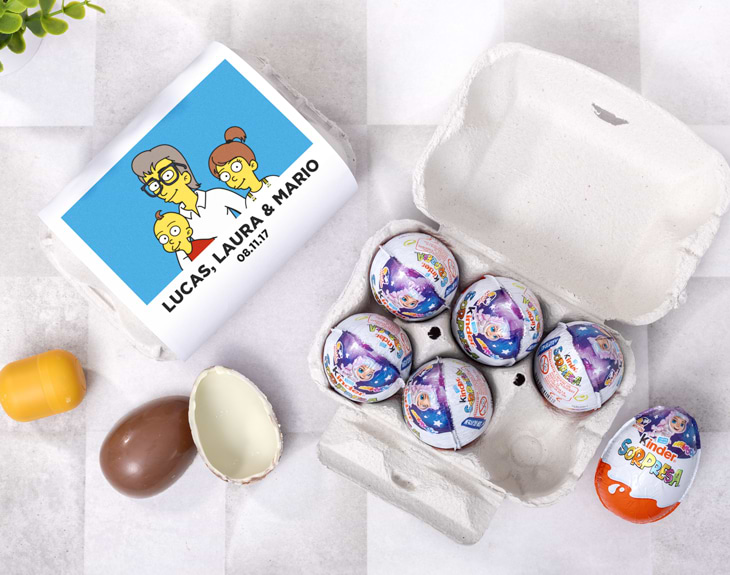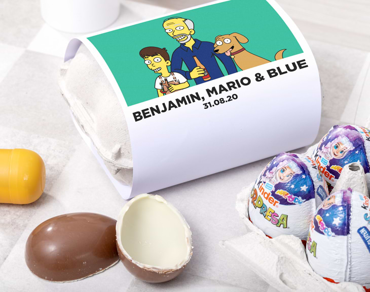 ¡Este Día del Padre tenemos el plan perfecto! Disfrutar de unos deliciosos chocolates mientras haces un maratón de Los Simpson. Para hacerlo aún más especial, te traemos esta huevera personalizada con el diseño "Padre Simpson". Un regalo original para sorprender a papá y pasar un rato divertido juntos. Lo mejor de esta sorpresa es que podrás crear tus propios personajes Simpson desde cero. Hay un montón de opciones para personalizar el pelo, la ropa, los accesorios y convertirte en una auténtica familia de Springfield. Y por si fuera poco, ¡incluye 6 chocolates huevos Kinder Joy! Un regalo tan dulce como divertido. Personalizar esta huevera es muy sencillo. Solo añade el producto al carrito y entra en el área de personalización. Desde allí podrás crear tus personajes y elegir el color de fondo. ¡Sin duda, será un regalo original para padres! Medida: 18 x 12 cm.