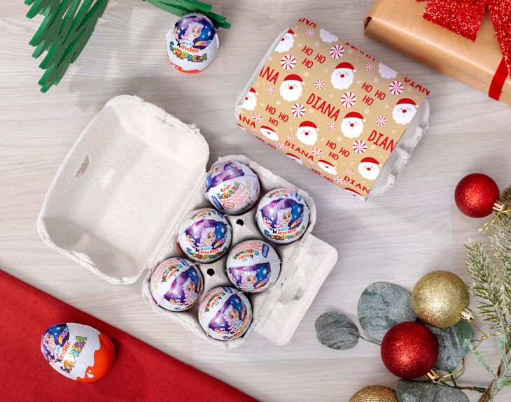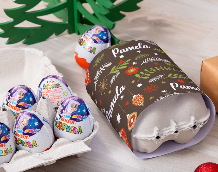 Todos sabemos lo que queremos en Navidad: ¡chocolate! ¿A quién no le gusta abrir los regalos y disfrutar de un buen chocolate mientras brindamos por Navidad? Si buscas un detalle dulce y especial para esta Nochebuena, tenemos el producto perfecto: nuestra huevera personalizada con un clásico diseño navideño. Una forma original de sorprender a quienes más quieres. Esta huevera contiene 6 deliciosos huevos Kinder, ¡y lo mejor es que puedes personalizarla! Solo tienes que añadir el nombre que desees para hacerla aún más única. Quien lo reciba quedará encantado al ver su nombre en la caja y, al descubrir los huevos Kinder, el chocolate favorito de muchos. Personalizar esta huevera es muy sencillo. Solo tienes que añadir el producto a tu carrito, ingresar al área de personalización y escribir el nombre que quieras. En breve, tendrás el regalo perfecto, listo para tu Navidad. ¡Un original regalo navideño lleno de dulce! Medida: 18 cm x 12 cm