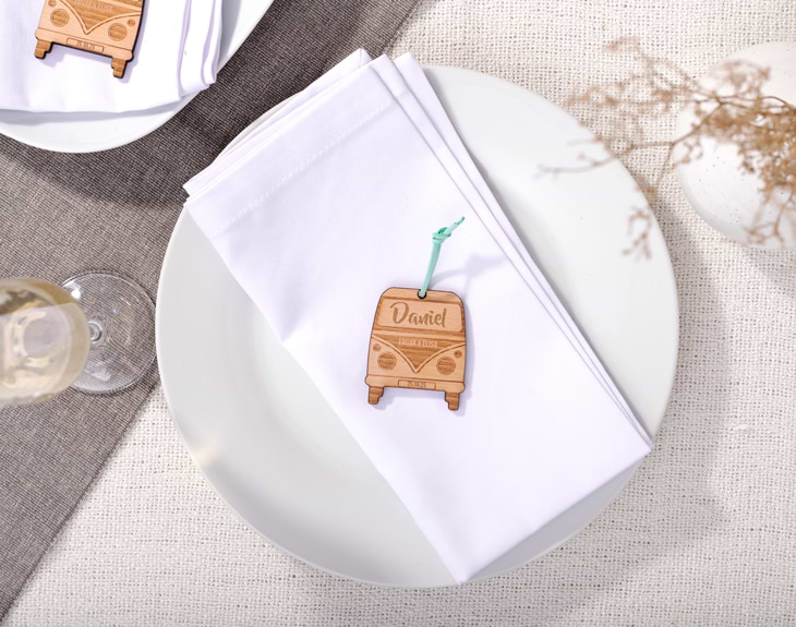 Si tú y tu amor están organizando su boda y son de esas parejas que se embarcarán en un gran viaje de luna de miel, tenemos el detealle perfecto para ese día tan especial. Estos identificadores de madera personalizados con diseño "Van" son ideales para darle un toque original a la decoración de tu boda. Te ayudarán a organizar las mesas de una manera divertida y original. Con estos originales identificadores, no solo organizarás los lugares de los invitados en las mesas, y además, sino que además se convertirán en un recuerdo que podrán atesorar para siempre. Elige la cantidad que necesites y personalízalos a tu gusto. El texto de los identificadores va grabado y viene acompañado de una cuerda que podrás elegir entre lo distintos colores disponibles. ¡Quedarán súper bonitos! Personalizar estos identificadores es muy sencillo. Solo tienes que añadir la cantidad de identificadores que necesitas al carrito y entrar al área de personalización. Allí, podrás escribir el texto que quieras y elegir el color de la cuerda. Puedes personalizarlos todos igual o cada uno diferente, ¡tú decides! Medidas: 8x8 cm.