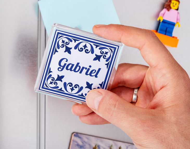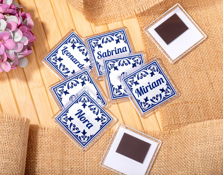 Los pequeños detalles son los que hacen grande una celebración. Si estáis preparando una boda cuidada al milímetro, nuestros imanes con diseño de azulejo mosaico son la elección perfecta como marca sitios personalizados que además vuestros invitados podrán llevarse como recuerdo. Este elegante imán, con acabado en mosaico estilo azulejo, puede personalizarse con el nombre de cada invitado, convirtiéndose en un detalle práctico y decorativo que da la bienvenida en la mesa y que, una vez en casa, seguirá recordando ese día tan especial. Fabricado en metacrilato, además de decorar y organizar, estos marca sitios imantados son un precioso recuerdo que tus invitados podrán colocar en la nevera, como símbolo de una celebración inolvidable. Porque en cada detalle se cuenta una historia... y esta será la vuestra. Personalizarlo es muy sencillo. Añade la cantidad que necesites al carrito. Podrás añadir el texto que quieras en nuestra área de personalización, ¡y listo! Quedarán perfectos y serán un recuerdo original para bodas. Medidas: 6,5 x 6,5 cm