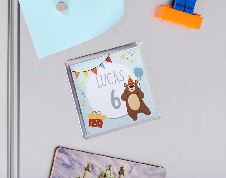 ¿Se acerca el cumpleaños de tu hijo o hija y todavía no sabes qué entregar a los invitados como recuerdo? Estos imanes personalizados de metacrilato son el detalle perfecto para celebrar a lo grande el cumple de tu pequeño o pequeña. Coloridos, alegres y adorables, ¡son el combo ideal para sorprender y enamorar a toda la familia y amigos! Con un bonito diseño de "Cumple animalitos", estos originales imanes pueden personalizarse con el texto que tú elijas. Puedes añadir el número de edad, el nombre del cumpleañero/a, la fecha o cualquier detalle especial. Así se convierten en un recuerdo práctico y decorativo que acompañará a todos los invitados en sus hogares. Además, podrás escoger entre varios animalitos disponibles en nuestro diseñador. ¿Listo para personalizar? ¡Es muy fácil! Solo tienes que seleccionar la cantidad que necesites y añadir el producto al carrito. Luego, en el área de personalización, escribe el texto que desees... ¡y listo! Quedarán perfectos y se convertirán en un recuerdo original para cumpleaños infantiles que nadie olvidará. Medidas: 6,5 x 6,5 cm Material: metacrilato