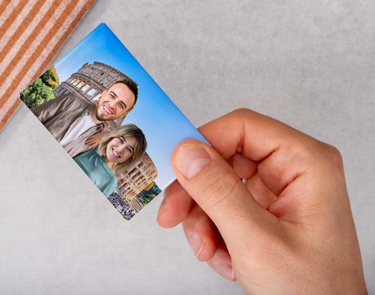 ¿Te gustaría imaginar un viaje a París, Roma o Nueva York? Este imán personalizado, resistente y decorativo para la nevera, te ayudará a hacer realidad ese pequeño gran sueño. Podrás elegir el diseño de tu ciudad favorita, añadir la cara que más te guste, la tuya o la de quien tú quieras y listo. Tendrás un recuerdo precioso de ese viaje soñado y maravilloso. Es un adorno para nevera muy pintoresco y original, y con sus caritas quedará genial. Seguro que a tus visitas les encantará tanto como a ti. Y quién sabe, quizá a esa persona le guste tanto el diseño que acabe organizando el viaje de verdad. Dale una oportunidad a la magia y crea tu imán con la ciudad que más te inspire. Este imán rectangular es duradero y perfecto para decorar tu nevera con estilo y personalidad. ¡Querrás coleccionarlos todos! Personalizarlo es súper fácil: solo tienes que añadir el imán al carrito y acceder al área de personalización. Desde allí podrás ver una vista previa del diseño y subir la foto que prefieras. Consejo útil: al hacer clic en “Editar” sobre la imagen principal, puedes eliminar el fondo de la foto para que la cara quede perfectamente recortada y encaje a la perfección en el diseño. ¡Quedará estupendo! Medidas: 6 x 9 cm.