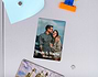 • Imán rectangular de metacrilato. • Tarjeta recordatoria.