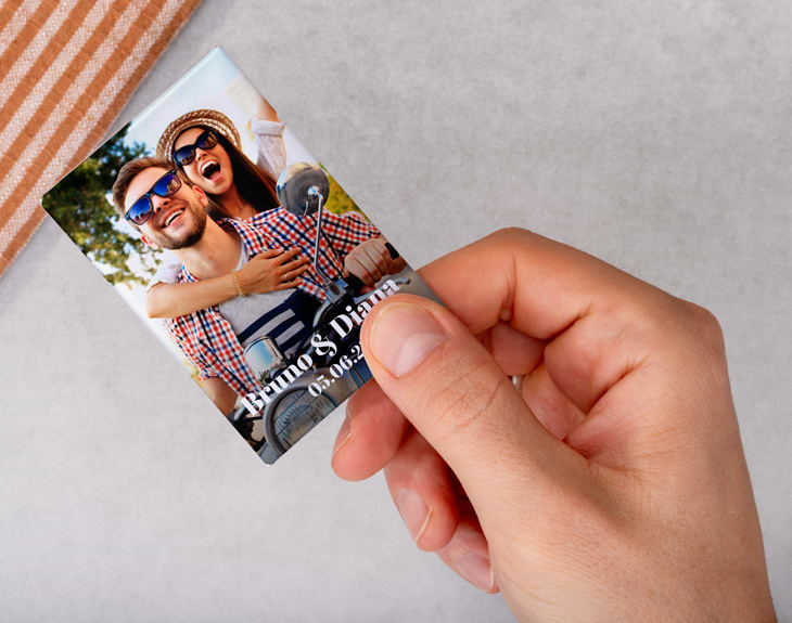 ¿Quieres tener un bonito recuerdo del día de tu boda con tu pareja, junto con la fecha de ese momento tan especial y maravilloso? Además, como es algo inolvidable, puedes recordarlo siempre con nuestro imán personalizado con foto para boda. Elige esa foto para que nunca olvides tu día especial, porque cada vez que tomes tu café por la mañana, te sacará una sonrisa. Quedaría genial tener en la nevera una imagen tan bonita de ese día. También podrás regalar este imán tan original a tus invitados como recuerdo de boda personalizado. Además, sus medidas de 6 x 9 cm son perfectas para plasmar tu imagen favorita en este imán rectangular. No pierdas tiempo y añade este producto. Sorprenderás a todos con este regalo de boda original, ideal para recuerdos personalizados y detalles únicos para invitados. Solo tienes que añadirlo al carrito, diseñar, elegir tu foto preferida y la fecha de ese maravilloso día, y listo. Tendrás un detalle precioso tanto para ti como para tus invitados.