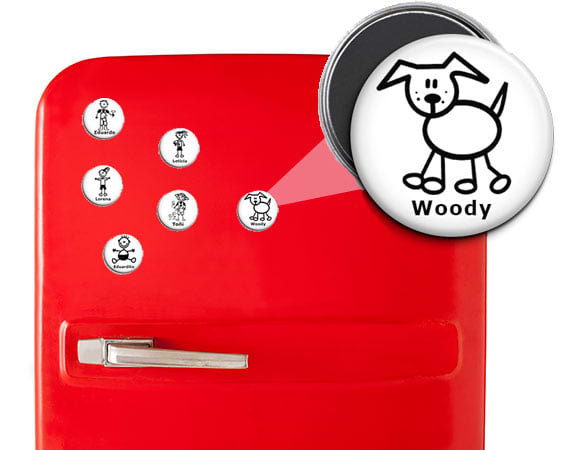 Presume de familia con este set de imanes personalizados. Disponible en tres tamaños: mediano (31mm), grande (50mm) y gigante (75mm).