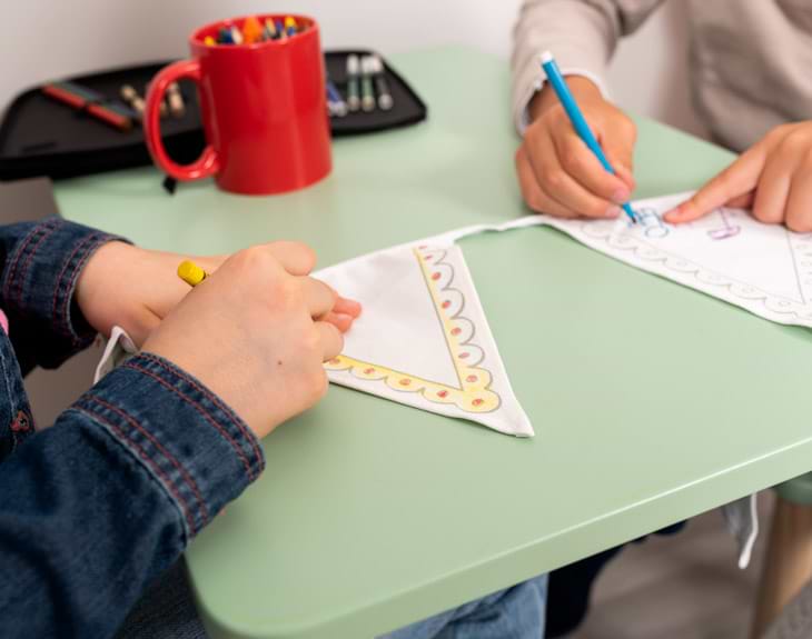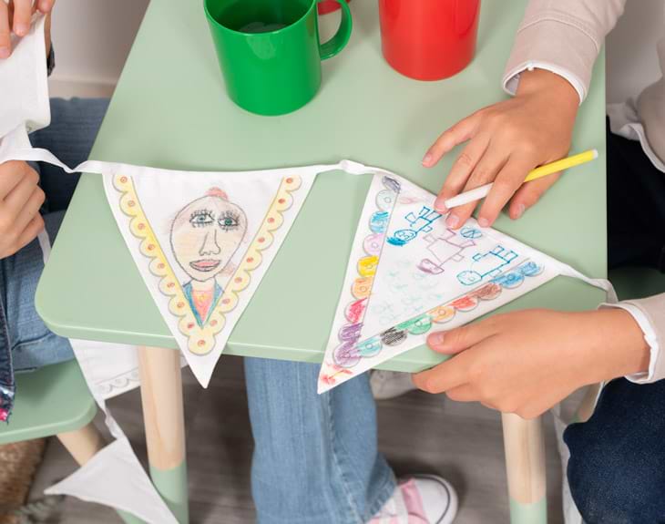 Los banderines para colorear están fabricados de algodón al 100%. Ideales para personalizar fiestas. Son lavables.