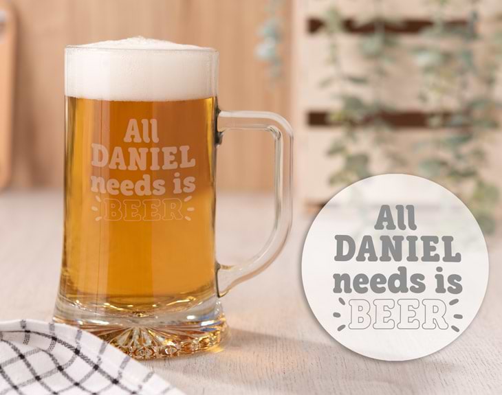 ¿Cuál es tu cerveza favorita? Hay muchas donde elegir, pero si la san Miguel sin duda es la que más te gusta, no podrás resistirte a tomarla en esta jarra de cerveza personalizada. De origen filipino, un grupo de españoles la empezó a fabricar en Manila, hasta que unos años después llegó a España y se consagró como una de las más importantes del panorama cervecero. Si te apetece disfrutar de una San Miguel bien fresquita, hazlo con todas las comodidades en esta original jarra. Serás la envidia de todos tus invitados cada vez que te vean beber cerveza en esta jarra tan guay. ¡Todo el mundo querrá tener una igual porque es la mejor del mundo! Pero para que el logo de San Miguel lleve tu nombre, primero tienes que personalizar tu propia jarra. Añade el producto al carrito, entra en el diseñador y escribe el nombre que quieras en el espacio vacío. Podrás colocarlo y ajustarlo como quieras. ¡Es una idea genial para regalar! Diámetro interior: 7cm Medidas aproximadas: 8,5 x 15,5 cm