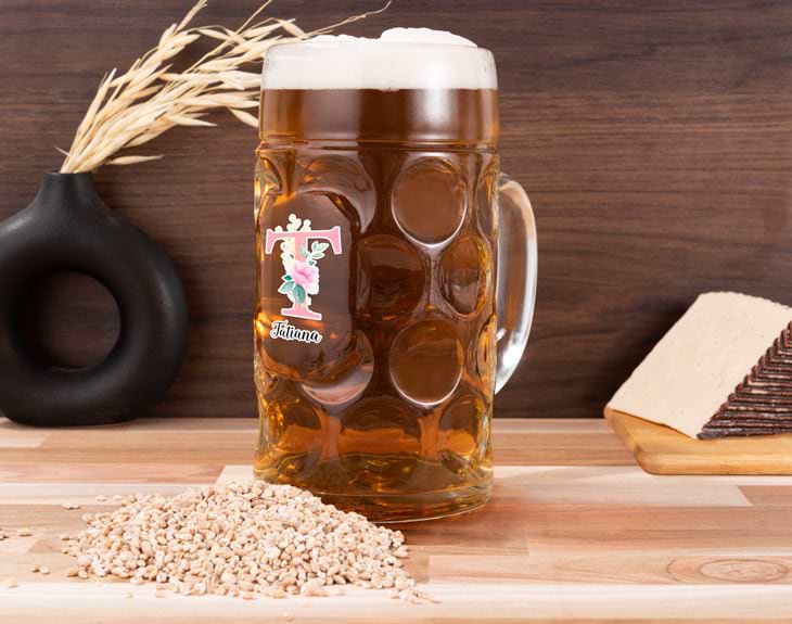 Con su espumita, su color oro, y ese sabor refrescante que trae a tu boca. Una cerveza da tantos placeres que a veces es indescriptible lo bien que sienta tomarse una después de un largo día de trabajo. Si sois unos amantes de la cerveza, sabéis que una buena jarra marca la diferencia y más si está personalizada. Con esta jarra de litro de cerveza personalizada podrás no solo sorprender, sino hacer un regalo que llamará la atención de todo el mundo. Elige la inicial del nombre de esa persona o de tu propio nombre, y tendrá una decoración muy especial. Con un color dorado y un reborde más clarito, rodeada de plantas, será la jarra más botánica de la estantería. Importante : la jarra no es apta para lavavajillas. Medidas: 20 cm de alto / 9,5 cm de diámetro.