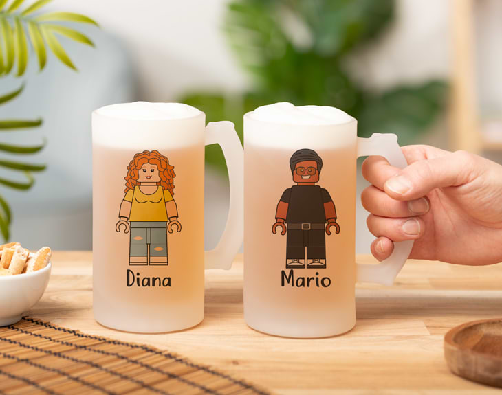 ¿A quién no le gusta disfrutar con sus amigos de una buena cerveza y muchas horas de conversación?. Si tú también conoces a esa persona que disfruta de estos planes como la que más, Por eso sorpréndela por su cumpleaños con esta jarra opaca personalizada tan guay. Así, podrá disfrutar siempre que quiera de su cerveza favorita. Ya no hace falta ir a una terraza o a un bar, porque podrá saborearla en la mejor jarra del mundo y además desde casa. ¡No podemos pedir más! Sin duda este original regalo es todo un acierto para los amantes de la cerveza. Si quieren saborearla al máximo y ser el centro de todas las miradas en cualquier celebración, con esta jarra opaca, lo será. Pero es que además, si le encantan los muñecos Lego, esta jarra le robará el corazón. ¡Es ideal! Personalizar esta jarra es muy sencillo. Añade el producto al carrito y entra en el área de personalización. Desde ahí, podrás empezar a crear tu propio Lego, desde cero y con todos los detalles necesarios para que sea igualito que tu amigo o amiga. Finaliza con el nombre y listo. ¡Tendrás el mejor regalo del mundo!
